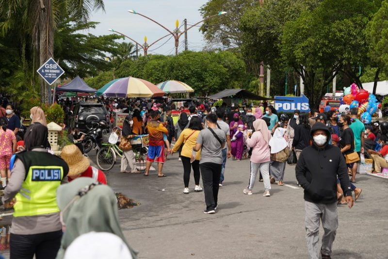 Sebagaimana diberitakan sebelumnya, CFD dilaksanakan dengan ketentuan bagi pedagang maupun pengunjung harus vaksin lengkap dua kali yang dibuktikan dari pemanfaatan aplikasi PeduliLindungi. and
