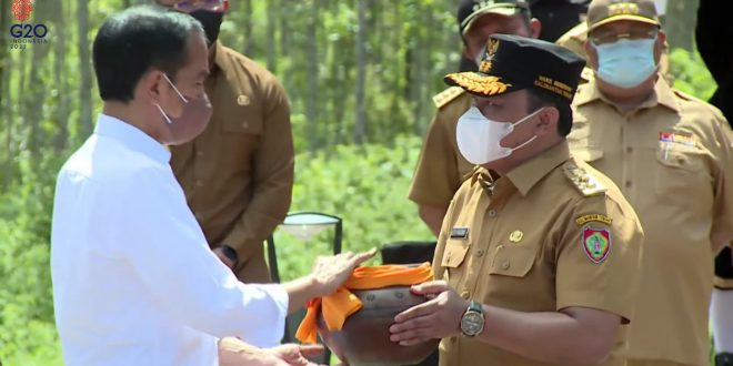 PALANGKA RAYA. Kaltengtimes.co.id – Sebagai bagian dari pembangunan Ibu Kota Negara (IKN) Nusantara, sample tanah dan air dari Kalimantan Tengah, diserahkan Wakil Gubernur Kalimantan Tengah, H. Edy Pratowo kepada Presiden RI Joko Widodo, Senin (14/3) pagi, di titik nol, Kabupaten Panajam, Paser Utara, Provinsi Kalimantan Timur. Sample tanah dan air dari Kalimantan Tengah Bersama-sama sample tanah dan air dari seluruh Provinsi di Indonesia yang diserahkan kepada Presiden Joko Widodo sekitar pukul 10.24 WITA tersebut merupakan sejarah dimulainya pembangunan Ibu Kota Negara Nusantara di Provinsintan Timur.