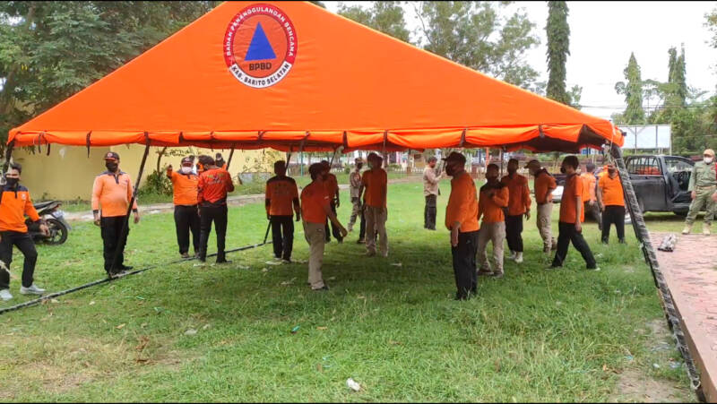 BUNTOK, Kaltengtimes.co.id — Guna mengantisipasi lonjakan pasien terkonfirmasi positif covid-19, Pemerintah Kabupaten Barito Selatan kini mempersiapkan dan menambah ruang isolasi mandiri terpadu yang berlokasi di Sanggar Pramuka dan Eks Dinas Pertambangan di Desa Sababilah, Kecamatan Dusun Selatan. Penambahan ruang isolasi mandiri ini dilaksanakan Pemerintah Kabupaten Barito Selatan melalui Badan Penanggulangan Bencana Daerah (BPBD) setempat, yakni dengan mendirikan tenda untuk menambah ruang isolasi mandiri terpadu untuk mengantisipasi lonjakan pasien positif covid-19. Kepala BPBD Barito Selatan, Eddy Purwanto, menjelaskan penambahan ruang isolasi mandiri terpadu yang berlokasi di Sanggar Pramuka dan Eks Dinas Pertambangan di Desa Sababilah tersebut dilaksanakan sesuai petunjuk langsung dari Bupati Barito Selatan, Eddy Raya Samsuri selaku Ketua Gugus Tugas Barito Selatan. Adapun persiapan ruang tambahan isolasi ini dilakukan mengingat kapasitas di RSUD Jaraga Sasameh Buntok hanya mampu menampung sekitar 55 tempat tidur bagi pasien positif covid-19 yang mana sekarang sudah terpakai sekitar 30 tempat tidur. Eddy purwanto menambahkan persiapan ruang isolasi tersebut juga sebagai bentuk dukungan pemerintah Kabupaten Barito Selatan terhadap Peraturan Menteri Dalam Negeri Nomor 26 Tahun 2021 tentang Penerapan PPKM, dimana Barito Selatan saat ini termasuk dalam katagori III dalam penerapan PPKM tersebut. (rul)
