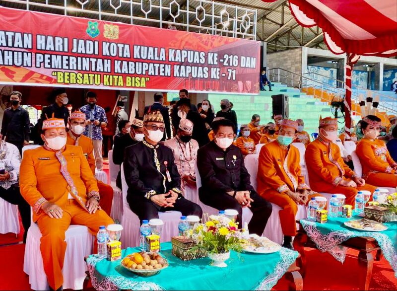 KAPUAS. Kaltengtimes.co.id – Staf Ahli (SAHLI) Gubernur Kalimantan Tengah Bidang Pemerintahan, Hukum dan Politik, Herson B Aden mengatakan peringatan hari jadi Kota Kuala Kapuas dan Hari Ulang Tahun Pemerintah Kabupaten Kapuas merupakan momentum bangkitnya perekonomian. Hal tersebut dikatakan Herson B Aden dalam sambutan nya saat menghadiri upacara hari jadi Kota Kuala Kapuas ke-216 dan Ulang Tahun Pemerintah Kabupaten Kapus ke-71, bertempat di Stadion Tingang Menteng Panunjung Tarung, Kota Kuala Kapuas, Kamis (24/3).Upacara Hari Jadi dirangkai dengan pemecahan rekor Muri bidang pendidikan matematika.
