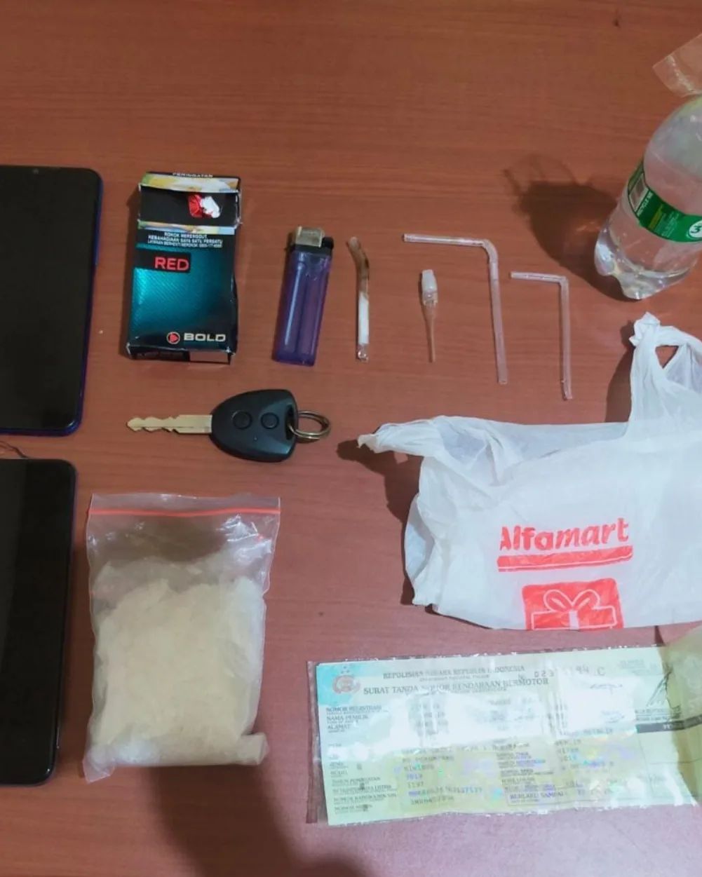 Selain sabu-sabu, beberapa barang bukti lain juga diamankan yakni satu unit Handphone, kotak rokok seperangkat alat hisap dan satu plastik klip disembunyikan dibawah kipas radiator berisi butiran kristal yang sabu serta kendaraan roda empat.