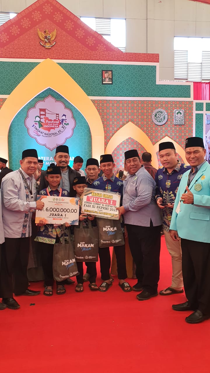 Sedangkan cabang Cerdas Cermat Al-Qur’an Tingkat TKA berhasil Juara Harapan 1 dari perwakilan Kabupaten Kotawaringin Timur. Regu ini terdiri dari Melani Misdi, Nur Syahira Nabila Shabriyya Athaya Maritsa.