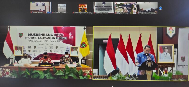 ‘’Saya selaku Kepala Daerah Provinsi Kalimantan Tengah, sangat meminta dukungan kita semua, baik Pemerintah Pusat dan Pemerintah Kabupaten/Kota, Pelaku Usaha dan Stakeholders, agar nantinya dapat mendukung pengelolaan Sumber Daya Alam Provinsi Kalimantan Tengah untuk peningkatan kesejahteraan masyarakat Kalimantan Tengah yang kita cintai,’’ kata H. Sugianto Sabran, dalam arahannya saat membuka Musyawarah Perencanaan Pembangunan (Musrenbang) Provinsi Kalimantan Tengah Tahun 2022 Dalam Rangka Penyusunan RKPD Tahun 2023, di Aula Jayang Tingang, Kantor Gubernur Kalteng, Kamis (7/4) pagi. Gubernur Kalteng, H. Sugianto Sabran hadir secara virtual dari Kabupaten Kotawaringin Barat. Acara Musrenbang yang digelar secara daring maupun luring ini sebagai salah satu upaya strategis mewujudkan sinergitas pelaksanaan tugas pemerintahan dan pembangunan di tingkat Daerah, Regional, dan Nasional.