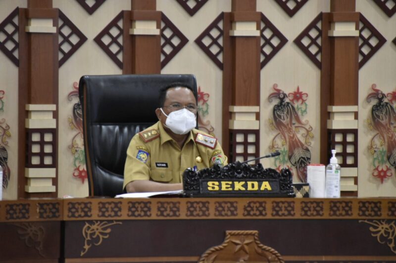 PALANGKA RAYA, Kaltengtimes.co.id – Gubernur Kalimantan Tengah H Sugianto Sabran meminta kepada seluruh Bupati/ Wali Kota se Kalimantan Tengah agar mempercepat vasinasi dengan menyasar Desa/ Kelurahan dan Kecamatan yang vaksinasinya masih dibawah 70 %. ‘’Percepatan vasinasi ini untuk memperkuat herd immunity masyarakat terhadap Covid-19 sekaligus untuk mengantisipasi lonjakan penyebaran Covid-19,’ kata Gubernur dalam arahannya yang disampaikan Pj. Sekda Prov. Kalteng H Nuryakin pada Rapat Percepatan Vaksin dan Booster Covid-19 di Pintu Masuk Prov. Kalteng Selama Bulan Suci Ramadhan 1443 H dan Mudik Lebaran. Rapat digelar secara hybrid, berlangsung terpusat di Aula Eka Hapakat, Lt. III Kantor Gubernur Kalteng, Senin (11/4).