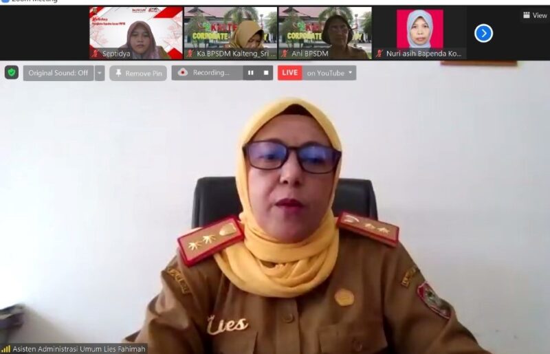 PALANGKA RAYA, Kaltengtimes.co.id – Asisten Administrasi Umum Sekretariat Daerah Provinsi Kalimantan Tengah Lies Fahimah berharap kinerja perangkat daerah agar dapat melakukan perubahan dan perbaikan kinerja nya untuk mewujudkan birokrasi pemerintahan menuju pelayanan yang berkelas dunia. Hal tersebut dikatakan Lies Fahimas saat membuka Workshop Peningkatan Kapasitas Assesor PMPRB secara virtual melalui akun zoom meeting BPSDM Prov. Kalteng, Senin (11/4).