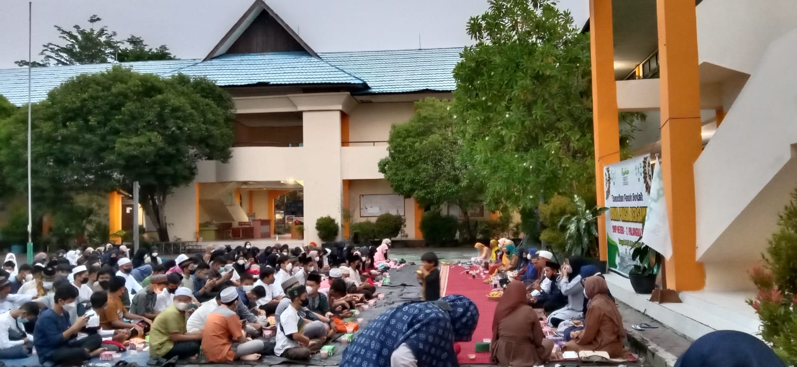 Palangka Raya, kaltengtimes.co.id-Acara buka puasa 150 pelajar Sekolah Menengah Pertama Negeri (SMP-2) Palangka Raya, Sabtu (16/4) disertai sumbangan untuk pembangunan Mesjid Al Murabbi sekolah setempat