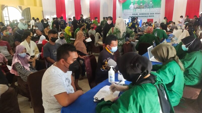 PALANGKA RAYA, Kaltengtimes.co.id – Gerakan 1 juta vaksinasi yang dilaksanakan secara serentak di Indonesia, termasuk di wilayah Kalimantan Tengah dinilai sukses. Di Palangka Raya Gerakan 1 Juta Vaksin dipusatkan di Asrama Haji Jalan G.Obos Palangka Raya pada Kamis (21/4) pagi. Dari pantauan media ini, sejak pukul 07.00 pagi masyarakat berduyun-duyun datang ke lokasi untuk divaksin, baik dosis satu, dosid dua dan vaksin booster. Karena kuota sudah penuh, panitia pelaksana yang dalam hal ini kerjasama antara Pengurus Wilayah Nahdlatul Ulama, Kemenag dan Polda Kalimantan Tengah terpaksa ditutup sekitar pukul 11.00 siang, dan besok pagi kembali dibuka bagi masyarakat yang ingin mengikuti Gerakan 1 Juta Vaksin tersebut. ‘’Melihat tingginya animo masyarakat datang ke Asrama Haji untuk divaksin, maka kami yakin target vaksinasi diatas 70 persen Inshaa Allah dapat tercapai,’’ kata Dr.HM. Wahyudi, SP, MM.