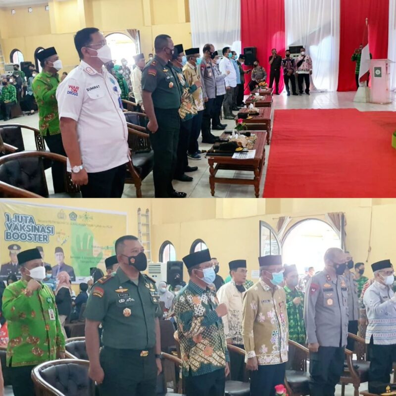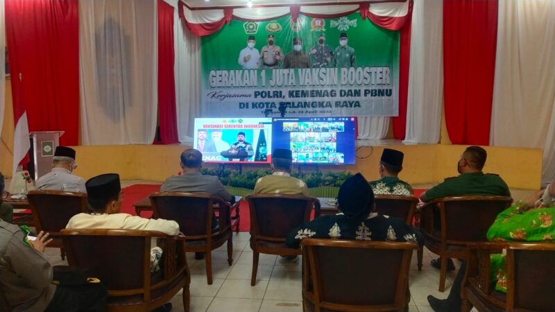 PALANGKA RAYA, Kaltengtimes.co.id –Asisten Bidang Pemerintahan dan Kesejahteraan Rakyat Setda Provinsi Kalimantan Tengah Katma F Dirun mewakili Gubernur Kalimantan Tengah H. Sugianto Sabran menghadiri Gerakan 1 Juta Vaksin yang dipusatkan di Asrama Haji Palangka Raya, Kamis (21/4) pagi. Selama kegiatan vaksinasi berlangsung yang dirangkai dengan video conference Kapolri Jendral Listyo Sigit Prabowo, Menteri Agama Yaqut Cholil Qoumas dan Ketua Umum PBNU Yahya Cholil Staquf, Katma F Dirun tampak tidak beranjak dari tempat duduknya mendampingi Ketua PWNU Kalimantan Tengah Dr.HM Wahyudi F Dirun, Kapolda Kalteng Irjen Pol Nanang Avianto, Danrem 102/ PP Brigjen TNI Puro Sudaryanto dan Kakanwil Kemenag Kalteng Dr. H. Noor Fahmi dan Ketua MUI Kalteng Dr.H. Khairil Anwar.