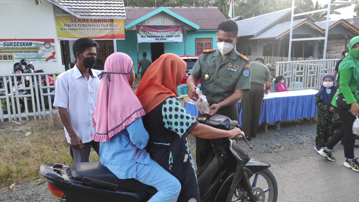 Jajaran Koramil 01 Kapuas Kuala, saat membagikan takzil kepada warga.