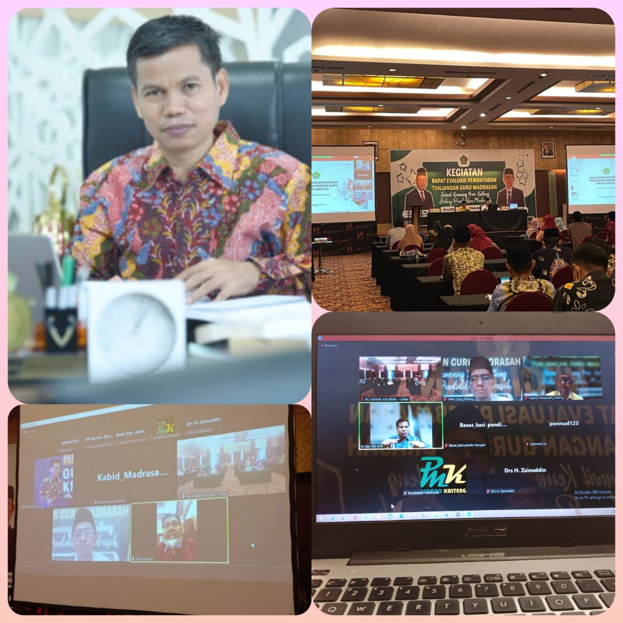 Palangka Raya, kaltengtimes.co.id-Dalam rangkaian kegiatan Rapat Evaluasi Pembayaran Tunjangan Guru Madrasah, Seksi Guru Bidang Pendidikan Madrasah Kanwil Kementarian Agama Provinsi Kalimantan Tengah menghadirkan narasumber Direktur Guru dan Tenaga Kepenidikan (GTK) Madrasah Kementerian Agama RI, Dr. Muhammad Zain, S.Ag., M.Ag. secara daring.