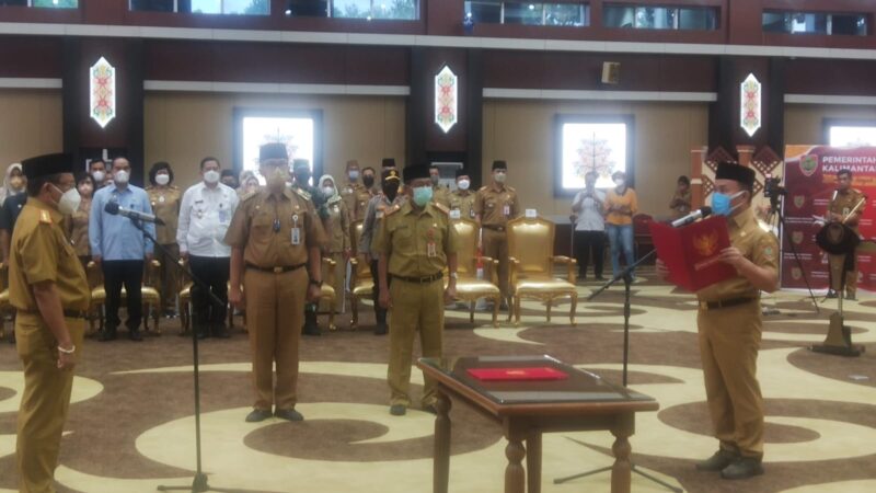 PALANGKA RAYA, Kaltengtimes.co.id – Gubernur Kalimantan Tengah H. Sugianto Sabran melantik dan mengambil Sumpah Jabatan Sekretaris Daerah Prov. Kalteng, bertempat di Aula Jayang Tingang, Lantai II Kantor Gubernur Kalteng, Senin (25/4). Pejabat Pimpinan Tinggi Madya yang dilantik sebagai Sekretaris Daerah Prov. Kalteng adalah H. Nuryakin. Pelantikan ini berdasarkan Surat Keputusan Presiden Republik Indonesia Nomor 47/ TPA Tahun 2022 tanggal 19 April 2022 tentang Pengangkatan Pejabat Pimpinan Tinggi Madya di Lingkungan Pemprov Kalteng.
