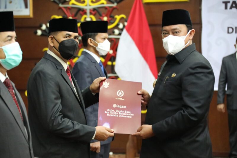 PALANGKA RAYA, Kaltengtimes.co.id – Wakil Gubernur Kalimantan Tengah, Haji Edfy Pratowo berharap pejabat penerima Penghargaan Satyalencana dapat meningkatkan pengabdian dan prestasi kerja kepada Bangsa dan Negara. Hal tersebut dikatakan Edy Pratowo saat memimpin Upacara Penyematan Satyalancana Karya Satya 30 Tahun, 20 Tahun dan 10 Tahun di Lingkup Pemerintah Provinsi Kalimantan Tengah Tahun 2021, di Aula Eka Hapakat, Kantor Gubernur Kalteng, Kamis (12/8). Sebelum acara penyerahan Penghargaan Satyalencana, terlebih dahulu dibacakan Surat Keputusan Presiden Republik Indonesia Nomor 34/TK/2021 tentang Penganugerahan Tanda Kehormatan Satyalancana Karya Satya. setelah itu dilanjutkan dengan penyematan Tanda Kehormatan Karya Satya oleh Wakil Gubernur Kalteng, Edy Pratowo kepada perwakilan penerima Satyalancana Karya Satya 30, 20 dan 10 Tahun. Penerima Satyalencana 30 tahun diantaranya Yuren S. Bahat, Satyalancana Karya Satya 20 Tahun kepada Hamka dan Satyalancana Karya Satya 10 Tahun kepada Maulana Akbar. Dalam sambutan tertulis Gubernur Kalimantan Tengah, Haji Sugianto Sabran yang dibacakan Edy Pratowo dikatakan bahwa Penganugerahan Satyalancana Karya Satya dilaksanakan berkenaan dengan Peringatan HUT ke-76 Kemerdekaan RI. Peristiwa ini hendaknya dijadikan momentum untuk meningkatkan pengabdian dan prestasi kerja kepada Bangsa dan Negara. “Atas nama Pemprov. Kalteng saya mengucapkan selamat dan terima kasih serta penghargaan setinggi-tingginya kepada saudara-saudara. Saya harapkan pula agar prestasi dan pengabdian saudara terus ditingkatkan sehingga kinerja Instansi dan Pemprov. Kalteng berkembang baik dan maju menuju Kalteng Semakin Berkah,’’ kata Edy Pratowo. Di lingkup Provinsi Kalimantan Tengah yang menerima Penghargaan Satyalancana Karya Satya 30 Tahun, 20 Tahun dan 10 Tahun berjumlah 44 orang kategori 30 Tahun, 60 orang kategori 20 Tahun dan 180 orang untuk kategori 10 Tahun. Kegiatan yang juga dihadiri Pj.Sekda Prov.Kalteng, H.Nuryakin, Kepala BKD Katma F Dirun serta perwakilan penerima Satyalancana Karya Satya 30, 20 dan 10 Tahun yang hadir secara virtual. (red)