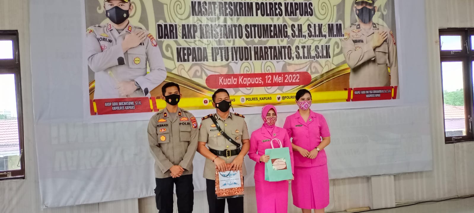 Kuala Kapuas, kaltengtimes.co.id-Bertempat di Aula Tingang Menteng Panunjung Tarung Polres Kapuas, hari ini Kamis 12/05/2022 Polres Kapuas menggelar serah terima jabatan Kasatreskrim dari pejabat lama AKP Kristanto Situmeang kepada pejabat baru Iptu Iyudi Hartanto dipimpin langsung Kapolres Kapuas AKBP Qori Wicaksono.