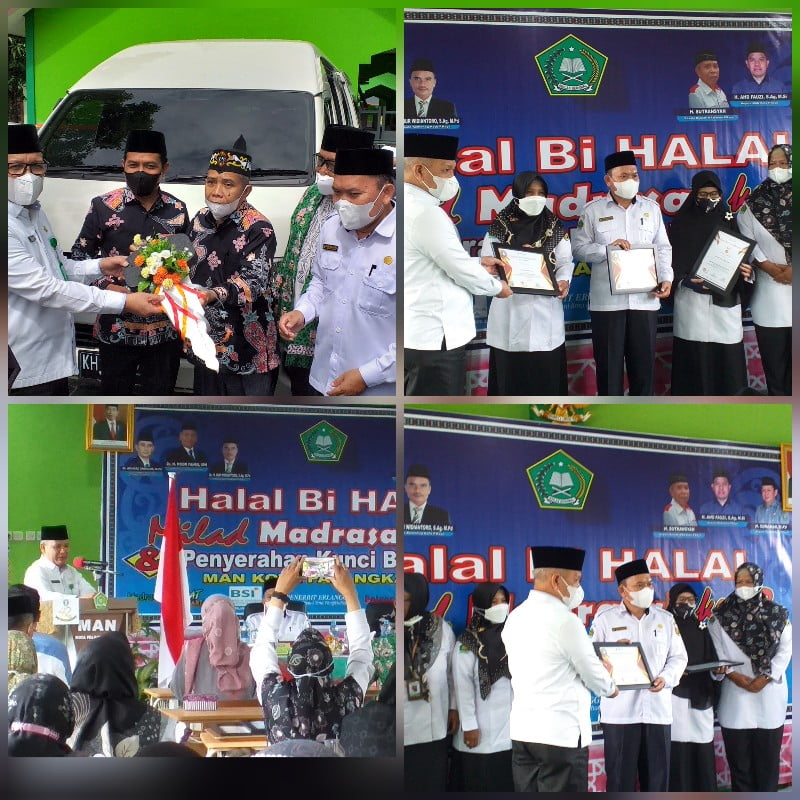 Milad MAN-Suasana acara Milad MAN Kota Palangka Raya yang dirangkai dengan acara halal bi halal serta penyerahan Bis Jenis Hiace kepada pihak sekolah. (Ist)