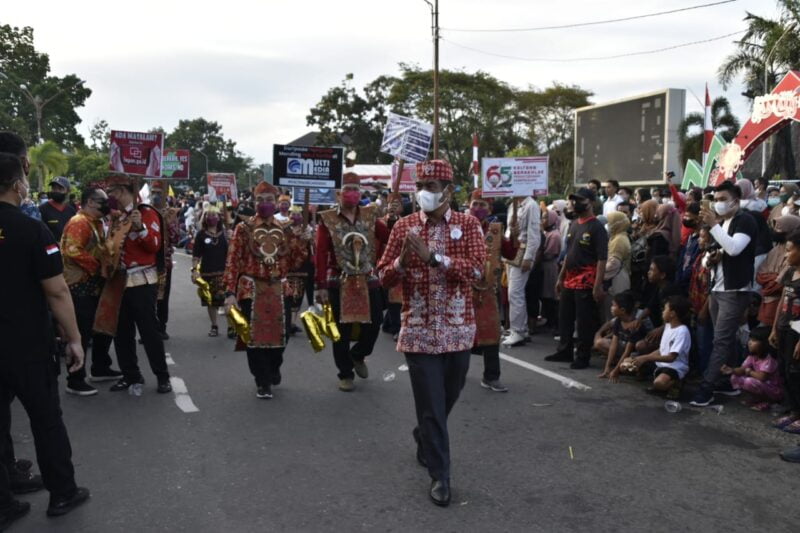 PALANGKA RAYA, Kaltengtimes.co.id – Kepala Dinas Komunikasi, Informatika, Persandian dan Statistik (Diskominfosantik) Provinsi Kalimantan Tengah Agus Siswadi memimpin langsung kontingennya mengikuti Pawai Festival Budaya Isen Mulang (FBIM) Tahun 2022 dengan Tema “Kalteng Merdeka Sinyal 2024” bertempat di Bundaran Besar Palangka Raya, Selasa (17/5) siang. Pawai FBIM adalah salah satu rangkaian memperingati Hari Jadi Kalimantan Tengah ke 65 tahun.
