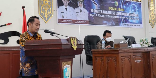 PALANGKA RAYA, Kaltengtimes.co.id – Dinas Komunikasi, Informatika, Statistik dan Persandian (Diskominfo) Kota Palangka Raya mengadakan Sosialisasi Security Awareness (Kesadaran Keamanan) bagi pejabat lingkup pemerintah Kota Palangka Raya, berlangsung di Ruang Rapat Peteng Karuhei II, Kantor Wali Kota Palangka Raya, Kamis (19/5/2022).