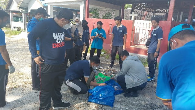 “Ketika kami sedang membersihkan sampah di pemakaman, menemukan sejumlah botol minuman keras, plastik klip, alat hisap sabu,”katanya.