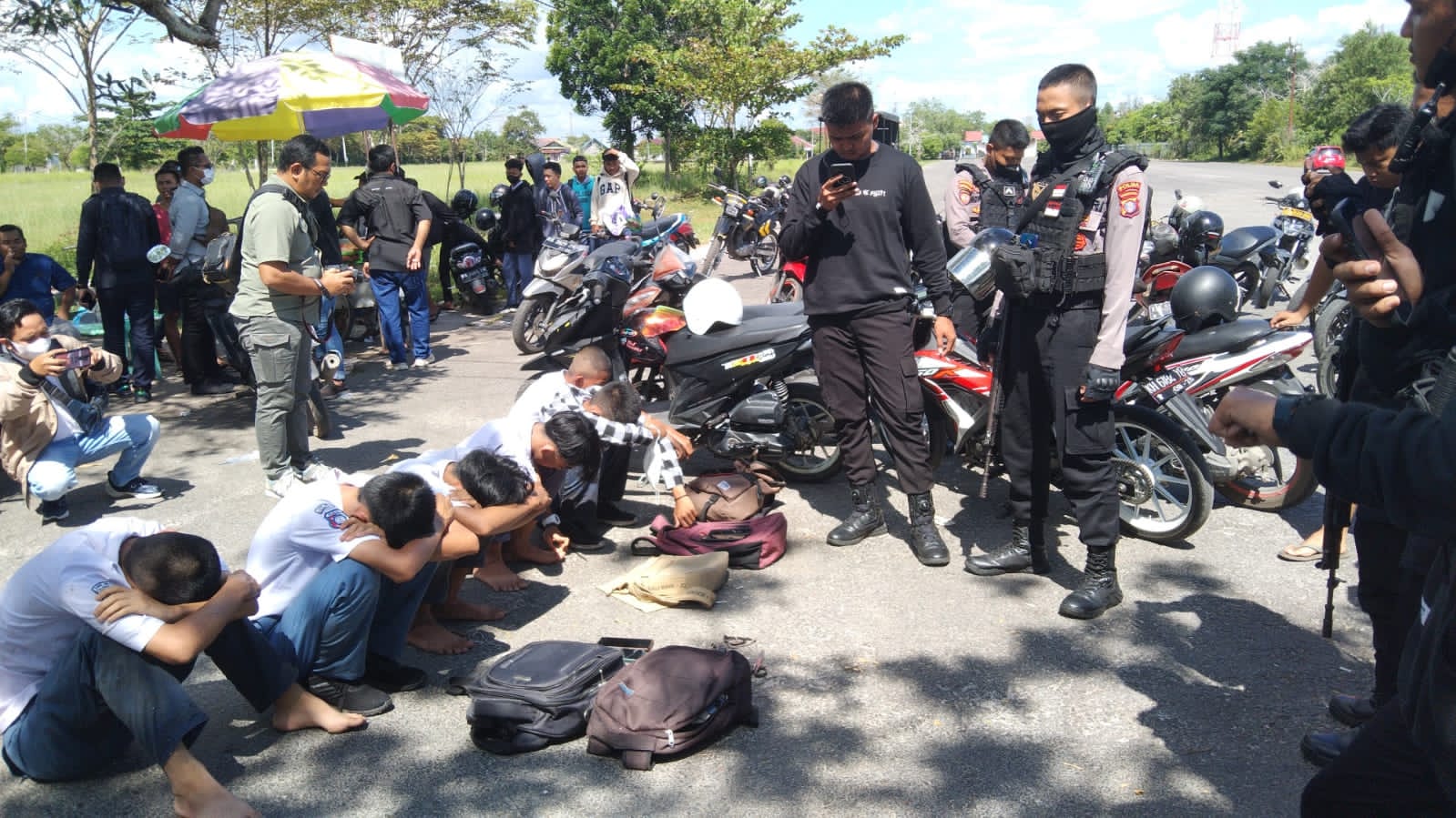 Sejumlah remaja melihat keberadaan anggota Ditsamapta Polda Kalteng langsung berhamburan kabur dan dilakukan pengejaran didapati 6 orang pelajar beserta sepeda motor yang digunakan para pelajar.