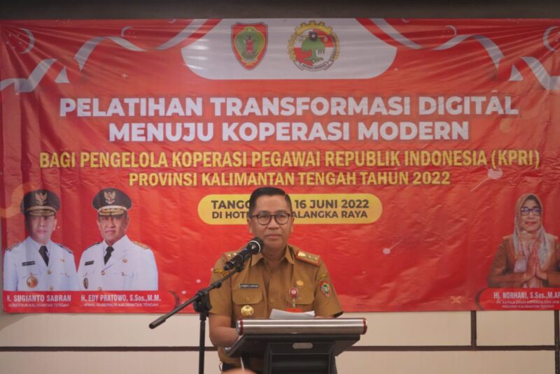 PALANGKA RAYA, Kaltengtimes.co.id — Asisten Bidang Perekonomian dan Pembangunan Sekretariat Daerah Provinsi Kalimantan Tengah Leonard S. Ampung mengatakan koperasi memiliki peran yang strategis dalam mengembangkan potensi serta kemampuan ekonomi anggota, pelaku usaha, dan masyarakat di sekitarnya. ‘’Melalui koperasi, para pelaku usaha maupun masyarakat dapat memperoleh akses untuk modal usaha serta kesempatan untuk mengikuti pelatihan pengembangan usaha,’’ kata Leonar S Ampung dalam sambutannya saat membuka secara resmi Pelatihan Transformasi Digital Menuju Koperasi Modern bagi Pengurus Koperasi Pegawai Republik Indonesia (KPRI) Prov. Kalteng Tahun 2022. Kegiatan ini berlangsung terpusat di Meeting Room Puruk Cahu Hotel Neo Palangka Raya, Senin (13/6).