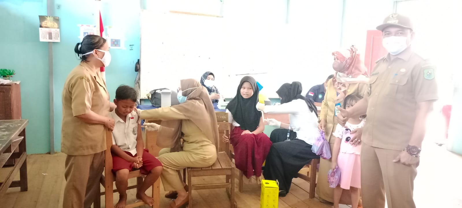 Siswa dan sisej SDN 3 Selat Utara saar menerima suntikan Imunisasi. (Ist)