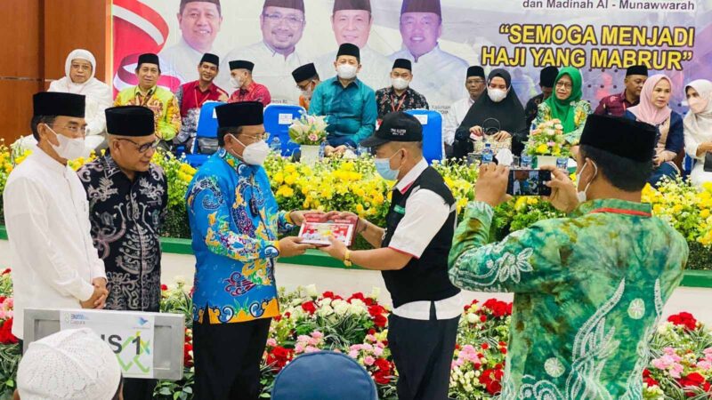 BANJARMASIN, Kaltengtimes.co.id – Sekretaris Daerah Provinsi Kalimantan Tengah H. Nuryakin berpesan agar Jemaah Calon Haji memperhatikan beberapa hal, antara lain menyiapkan diri sebaik-baiknya, beradaptasi, dan membaur dengan seluruh Jemaah Calon Haji yang lainnya, dengan situasi dan kondisi yang ada di negara tersebut. “Hendaknya ibadah haji yang nanti saudara-suudari laksanakan akan bermuara pada perubahan perilaku dan mental spiritual, bukan hanya menjadi lebih baik bagi diri sendiri, tetapi juga bagi orang lain, daerah, bangsa, dan negara,” tutur H. Nuryakin saat melepas secara resmi keberangkatan Jemaah Calon Haji Prov. Kalteng Kloter 5 Embarkasi Banjarmasin Tahun 1443 H/2022 M. Acara pelepasan berlangsung di Aula Jeddah Asrama Haji Embarkasi Banjarmasin, Kalimantan Selatan, Sabtu (18/6) malam.