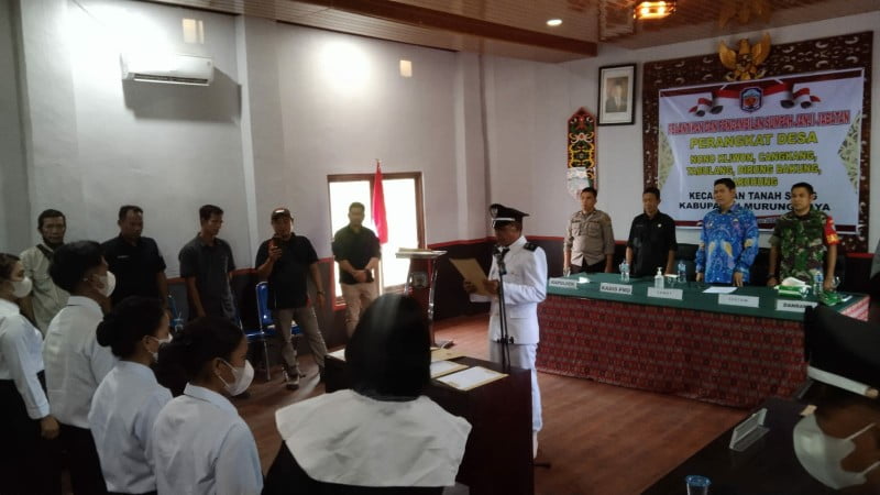 Kegiatan pelantikan dan pengembalian sumpah janji jabatan yang di buka langsung oleh Camat Tanah Siang Hendra Hadikusuma S STP di hadiri Kapolsek Tanah Siang IPDA Roy Jenses Simanjuntak, dan perwakilan dari Dinas Pemberdayaan Masyarakat Desa (DPMD).