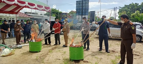 Kejari Kapuas saat memusnahkan Barang bukti dan barang rampasan. (Ist)