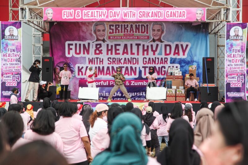 PALANGKA RAYA. Kaltengtimes.co.id — Sebanyak 700-an relawan muda yang tergabung dalam Srikandi Ganjar Kalimantan Tengah, mengikuti acara yang bertajuk Fun and Healthy Day. Sejumlah kegiatan diadakan untuk memeriahkan acara ini, seperti zumba, colorful party hingga bazar UMKM.