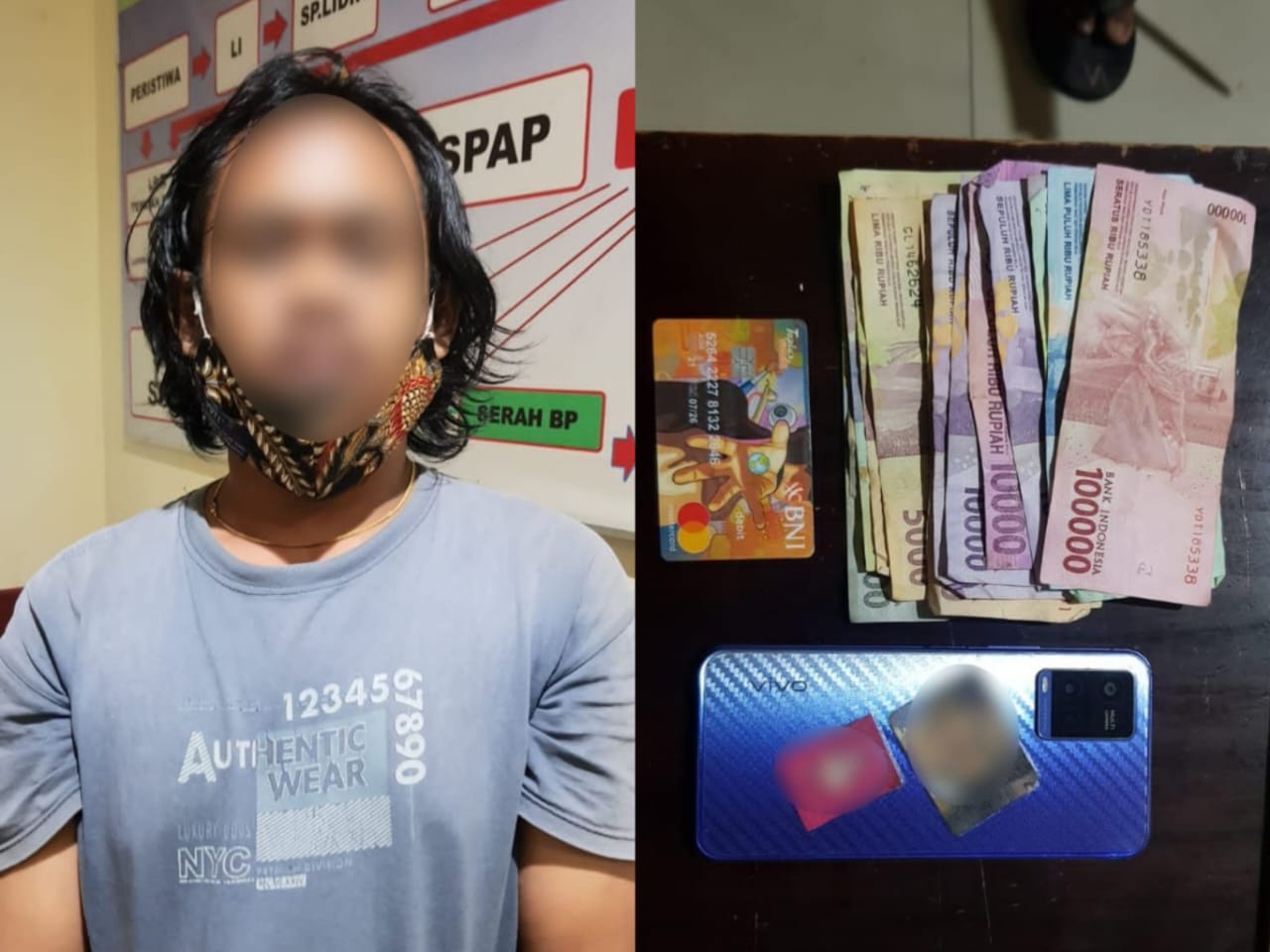 “Barang bukti yang berhasil diamankan berupa handphone merk Vivo Y21, kartu ATM Bank BNI, uang tunai Rp. 245 ribu,” katanya Sabtu (20/8/2022) siang.