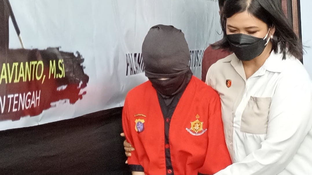 Pelaku saat diamankan petugas di Mapolda Kalteng. (Ist)