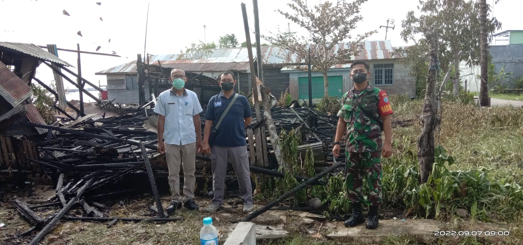 Lurah Panamas Moh. Noor di dampingi Babinsa Serka M. Safi’i dan Bhabinkamtibmas Ipda. Rizal saat di lokasi kebakaran. (Ist)