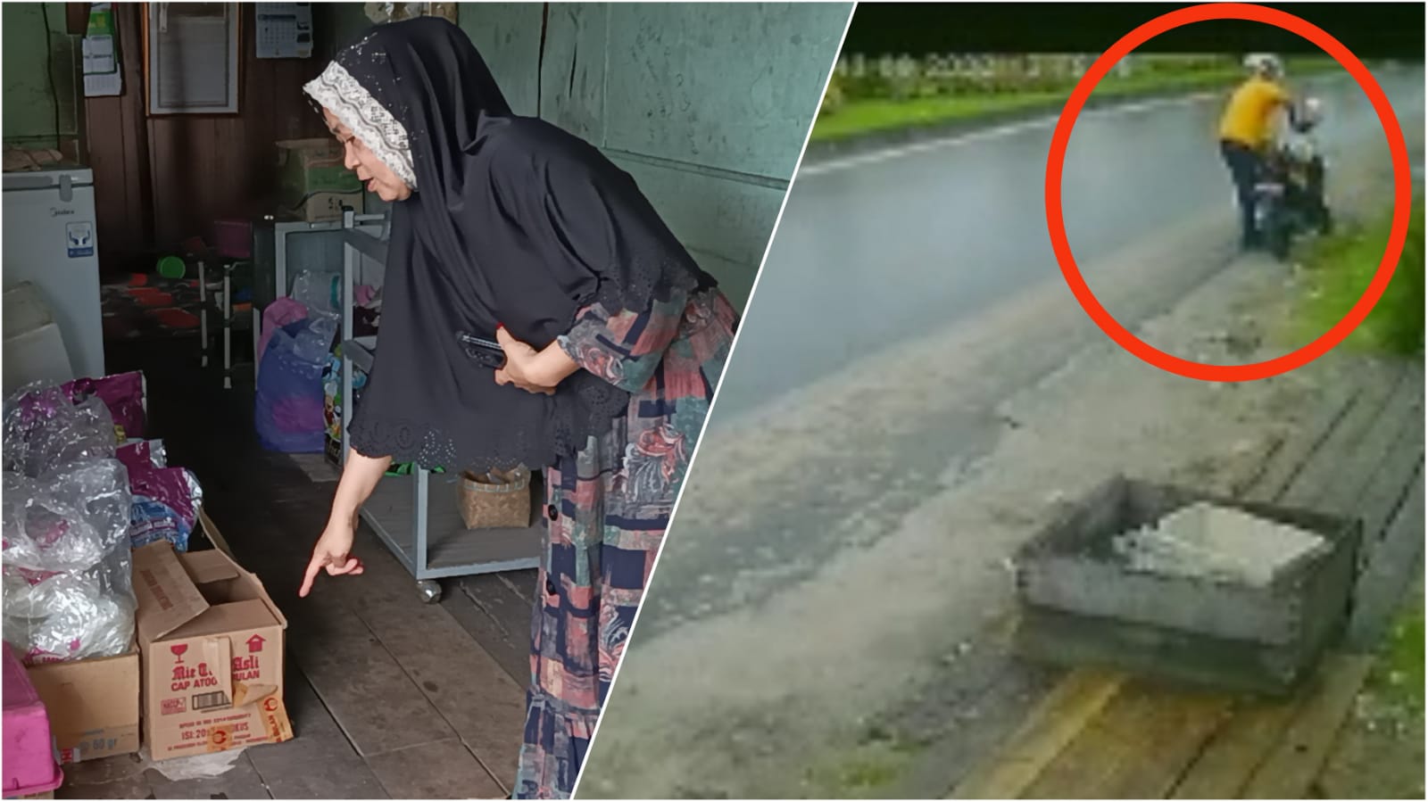 Dikatakan Halimah, saat itu dirinya sedang makan lalu pergi ke dapur cuci piring. Ketika ingin tutup warung melihat beras seberat 25 Kg sudah tidak ada.