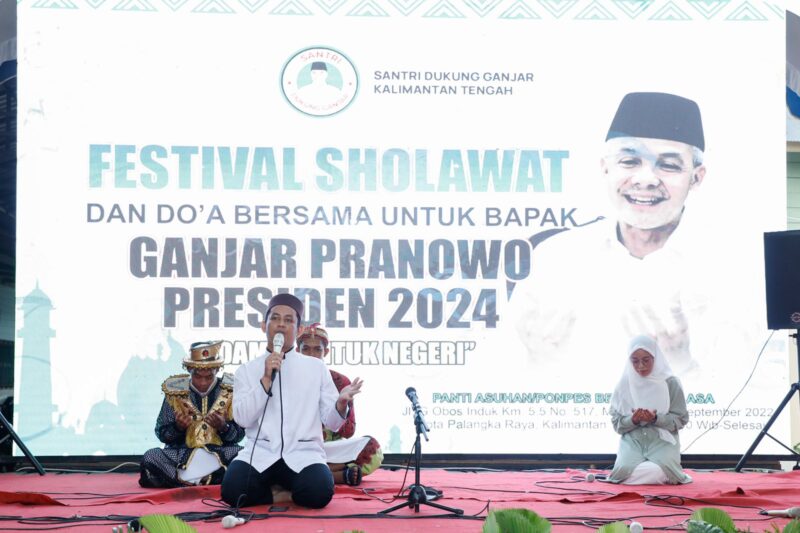 PALANGKA RAYA. Kaltengtimes.co.id — Relawan Santri Dukung Ganjar (SDG) Kalimantan Tengah menggelar “Festival Sholawat dan Doa Bersama untuk Negeri” bersama 600 santri dan ulama sekitar di Yayasan Panti Asuhan Berkah, Jekan Raya, Palangka Raya, Kalimantan Tengah, Selasa (20/9). Acara ini digelar dengan tujuan menemukan figur pemimpin yang bisa memenuhi tuntutan zaman demi kemajuan bangsa.
