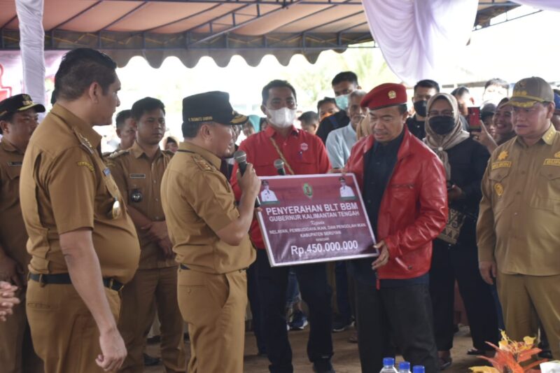 Pada kesempatan yang sama Gubernur menyerahkan Bantuan Langsung Tunai (BLT) Bahan Bakar Minyak (BBM) dari Pemprov. Kalteng kepada Nelayan, Pembudidaya Ikan, dan Pengolah Ikan Kabupaten Seruyan sebesar Rp450.000.000.