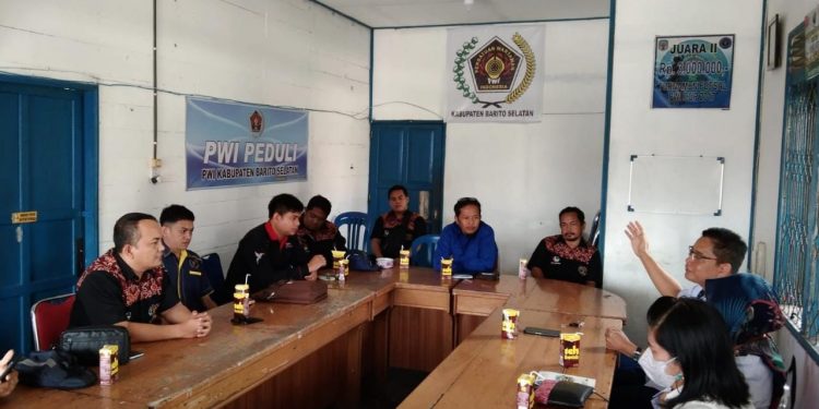 BUNTOK, kaltengtimes.co.id – Badan Kesatuan Bangsa dan Politik (Kesbangpol) Kabupaten Barito Selatan (Barsel) berkunjung ke Persatuan Wartawan Indonesia (PWI) Kabupaten Barito Selatan (Barsel) dalam rangka menyamakan presepsi dalam memerangi peredaran Narkoba yang marak di daerah Kabupaten Barsel ini.