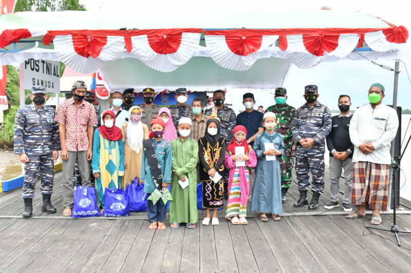 SAMUDA. Kaltengtimes.co.id — Komandan Pangkalan TNI AL Banjarmasin, Kolonel Laut (P) Herbiyantoko, M.Tr. Hanla melakukan kunjungan kerja ke wilayah Kalimantan Tengah. Untuk memulai kunjungan pertama dilakukan dengan meninjau Pos TNI AL Samuda, Kec. Mentaya Hilir, Kab. Kotawaringin Timur, Kalimantan Tengah. Minggu (29/8). Dalam kunjungan kerja nya Danlanal berkesempatan bertatap muka dengan Forkopimcam Mentaya Hilir Selatan dan pemberian tali asih berupa sembako kepada masyarakat maritim dan uang pembinaan kepada anak-anak didik TPA Nurul Hilmi binaan Pos TNI AL Samuda dalam rangka menyambut Hari Ulang Tahun TNI AL yang jatuh pada tanggal 10 September 2021. Wilayah kerja Lanal Banjarmasin mencakup wilayah yang sangat luas yaitu dari Desa Sungai Danau, Kecamatan Satui Kabupaten Tanah Bumbu Provinsi Kalimantan Selatan sampai dengan Desa Kuala Jelai Kabupaten Sukamara Kalimantan Tengah. Menurut keterangan Komandan Lanal Banjarmasin pada saat konferensi pers dengan wartawan menyampaikan bahwa kunjungan kerja ini dilaksanakan dalam rangka menyambut Hari Ulang Tahun TNI AL yang jatuh pada tanggal 10 September 2021 dalam rangka melaksanakan Bhakti Sosial yaitu pemberian Sembako dan Tali Asih kepada masyarakat maritim yang berada di sekitar Pos TNI AL Samuda. Ditengah situasi pandemi Covid -19 yang melanda sekarang ini tentunya banyak masyarakat yang terkena dampaknya sehingga dengan kehadiran TNI AL ditengah masyarakat dapat membantu masyarakat tentunya masyarakat maritim. ‘’Kegiatan Bhakti Sosial ini akan terus kami laksanakan di semua jajaran Posal di Kalimantan Tengah dan sekaligus melaksanakan kegiatan Safari Pos di wilayah kerja Lanal Banjarmasin yang berada di Kalimantan Tengah,’’ pungkas Kolonel Laut (P) Herbiantoko. (mar)