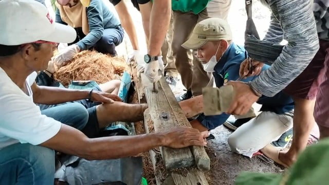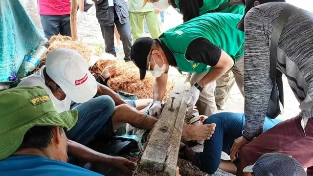 Kepala Dinsos Kapuas Budi Kurniawan saat ikut mengevakuasi ODGJ yang dipasung untuk menjalani pengobatan. (Ist)