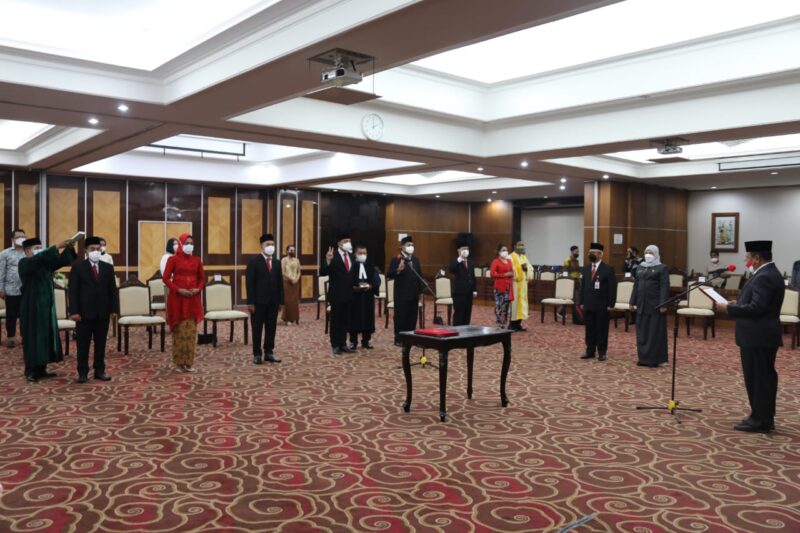PALANGKA RAYA. Kaltengtimes.co.id – Gubernur Kalimantan Tengah, H.Sugianto Sabran, meminta kepada Anggota Komisi Penyiaran Daerah (KPID) Provinsi Kalimantan Tengah untuk menjalankan kewajibannya melakukan pengawasan konten siaran dan aktif memberikan apresiasi atau penghargaan kepada lembaga penyiaran sebagai bentuk stimulasi dalam mendorong peningkatan kiualitas penyiaran di Kalimantan Tengah. Hal tersebut dikatakan Gubernur dalam sambutan yang dibacakan Pj.Sekda Kalimantan Tengah, H.Nuryakin, saat melantik 7 Anggota KPID Provinsi Kalimantan Tengah Periode Tahun 2021-2024, di Aula Eka Hapakat, Lantai III Kantor Gubernur, Jum’at (3/9) siang. Mengutif Press Release yang disampaikan Diskominfosantik Kalimantan Tengah, Pj.Sekda H.Nuryakin megatakan, selain sebagai media informasi kepada publik, KPID diharapkan dapat mengarahkan lembaga penyiaran dalam rangka menyukseskan agenda pembangunan di Kalimantan Tengah. Selain itu, anggota KPID harus mampu mengawal penyiaran dan memberikan literasi media secara masif kepada masyarakat agar ditengah era teknologi informasi saat ini, masyarakat mampu memilah-milah informasi yang baik dan benar sesuai Undang-Undang Penyiaran RI. Pelantikan 7 Anggota KPID tersebut berdasarkan Surat Keputusan Gubernur Kalteng Nomor 188.44/345/2021, Tanggal 30 Agustus 2021 tentang Anggota KPID Prov. Kalteng Periode Tahun 2021-2024. Ke-7 Anggota KPID yang dilantik tersebut yakni Henoch Rents Katoppo, Eni Artini, At Prayer, Nisa Rahimia, Chris Philip Alessandro, Ilham Busra dan Ahmada. Dijelaskan, sebelumnya, 7 Anggota KPID telah melalui proses pendaftaran, administrasi hingga uji kelayakan dan kepatuhan di DPRD Kalteng. Hadir dalam pelantikan tersebut, Staf Ahli Gubernur Bidang Kemasyarakatan dan Sumber Daya Manusia, Herson B. Aden, Asisten Administrasi Umum Setda Prov. Kalteng, Lies Fahimah, Plt. Kadis Kominfo, Persandian dan Statistik Prov. Kalteng, Agus Siswadi, Ketua Komisi Informasi Prov. Kalteng, Daan Rismon, Tim Panitia Seleksi serta sejumlah anggota KPID periode sebelumnya.(red)