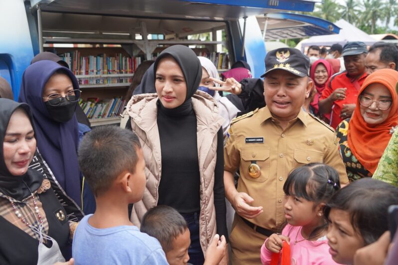 Gubernur Kalteng H. Sugianto Sabran didampingi Ketua TP-PKK Prov. Kalteng Ivo Sugianto Sabran meninjau perpustakaan keliling. (Photo/ist)