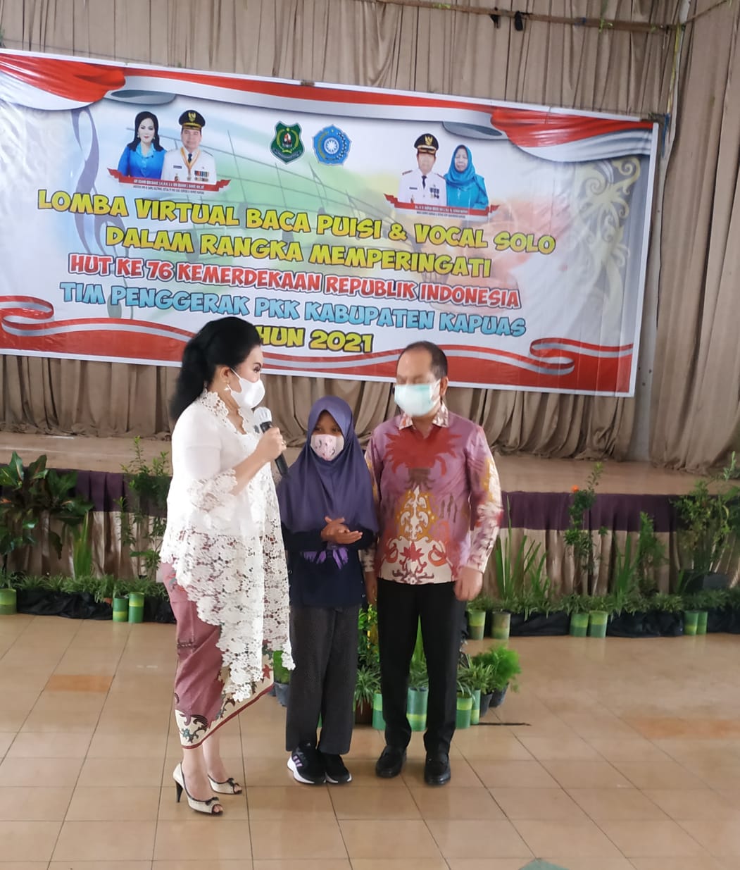 Kinar berhasil meraih juara satu lomba Virtual Baca Puisi dan Vocal Solo yang digelar TP PKK Kabupaten Kapuas, belum lama ini.