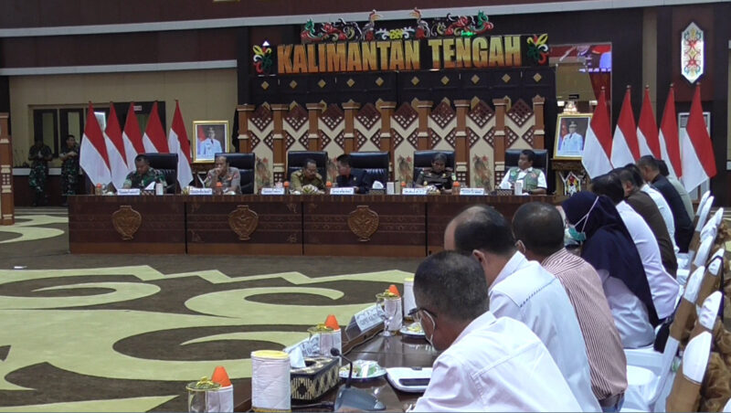 Gubernur Kalteng H. Sugianto Sabran, S.IP bersama unsur Forkopimda Prov. Kalteng saat menggelar Rapat Koordinasi Penanganan Banjir, Selasa (1/11). (Photo/Ni)