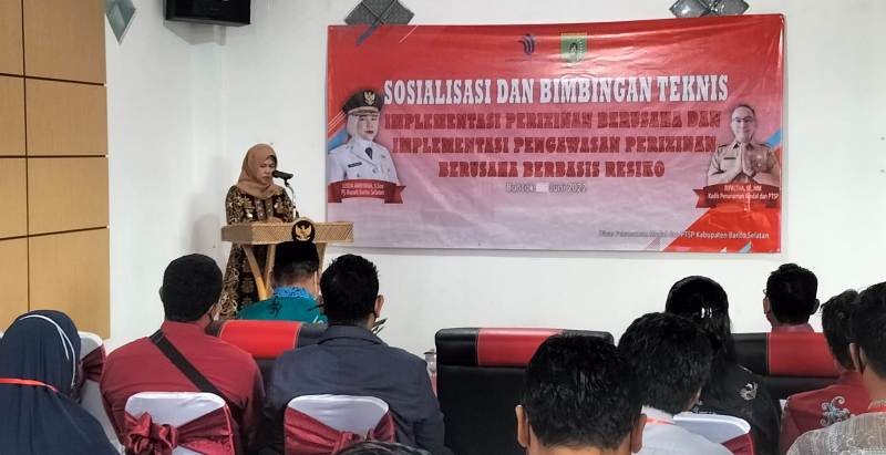 BUNTOK, kaltengtimes.co.id-Dinas Penanaman Modal dan Pelayanan Terpadu Satu Pintu atau DPMPTSP Barito Selatan menggelar sosialisasi pengawasan perizinan berusaha berbasis risiko bagi UMKM. Sosialisasi tersebut dilaksanakan di Aula Hotel Lutfan, Buntok, Selasa, (30/8).
