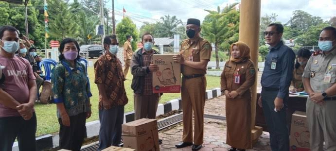 Tampak acara penyerahan bantuan CSR Bank Kalteng untuk poktan di Barsel. (Ist)