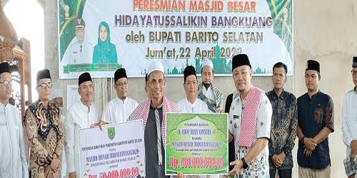 Dalam rangkaian acara tersebut Eddy Raya Samsuri juga menyerahkan bantuan pribadi sebesar Rp 100 juta kepada Masjid Hidayattussalikin serta menyerahkan bantuan dari Pemerintah Kabupaten (Pemkab) Barsel sebesar Rp 50 juta,