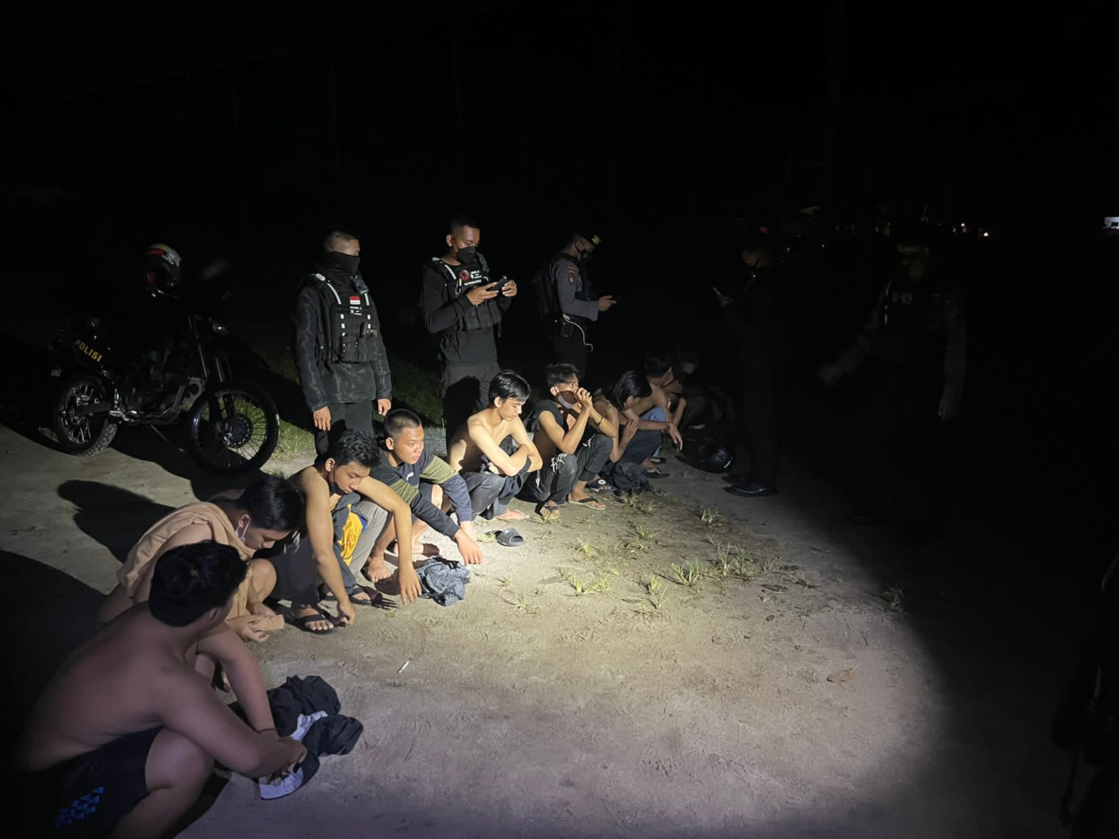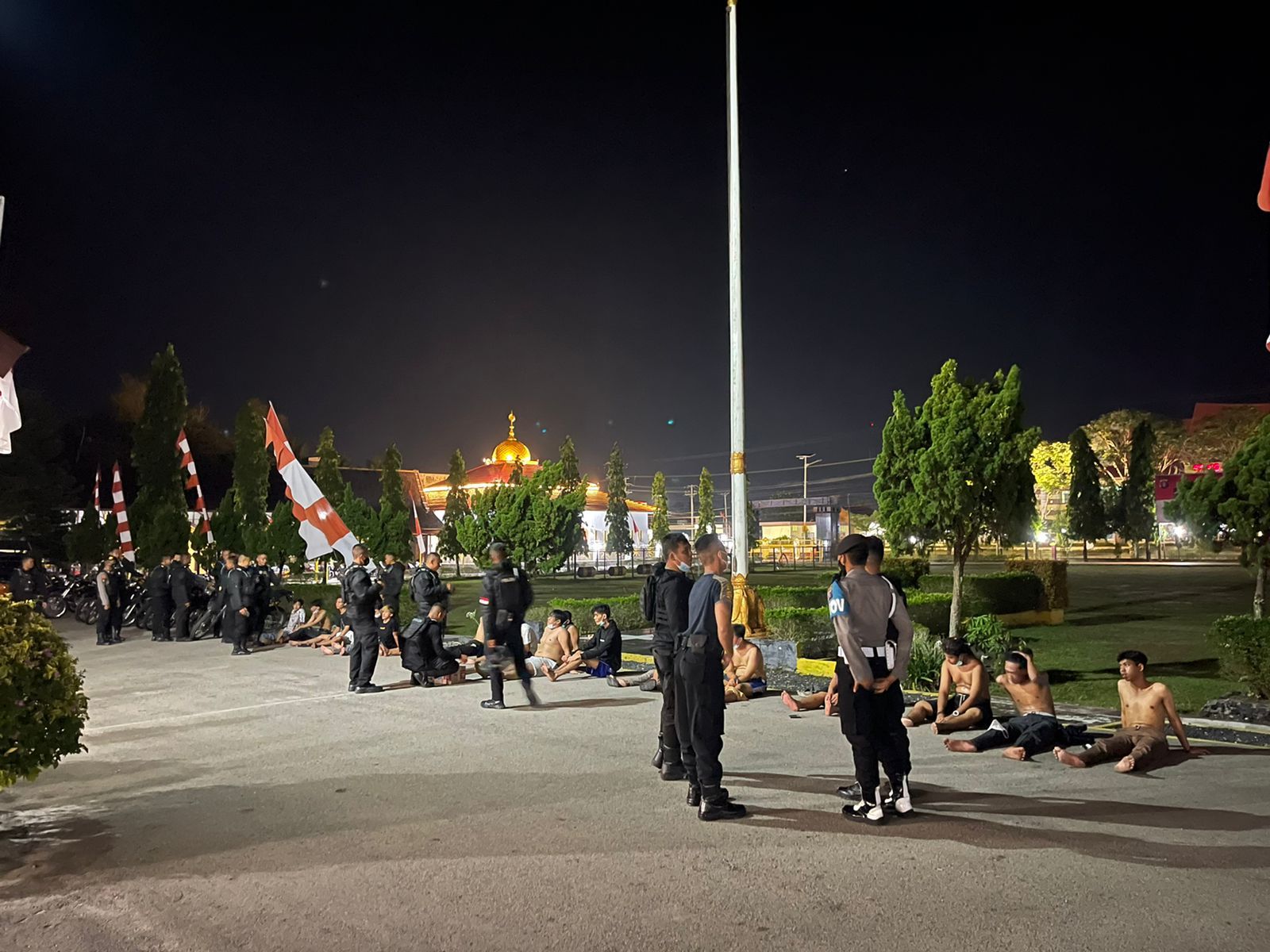 Palangka Raya, kaltengtimes.co-id-Anggota Rainmas Ditsamapta Polda Kalimantan Tengah mengamankan belasan remaja yang terlibat tawuran di lokasi Taman Kilometer Lima, Kota Palangka Raya, Selasa malam (7/9).
