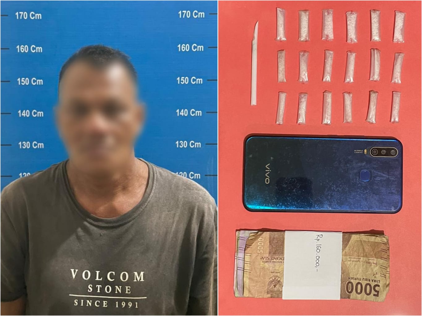 “Kami berhasil meringkus seorang bandar sabu berinisial A alias Yo (44) beserta barang bukti sebanyak 18 paket sabu seberat 5,56 gram siap edar,” jelasnya.