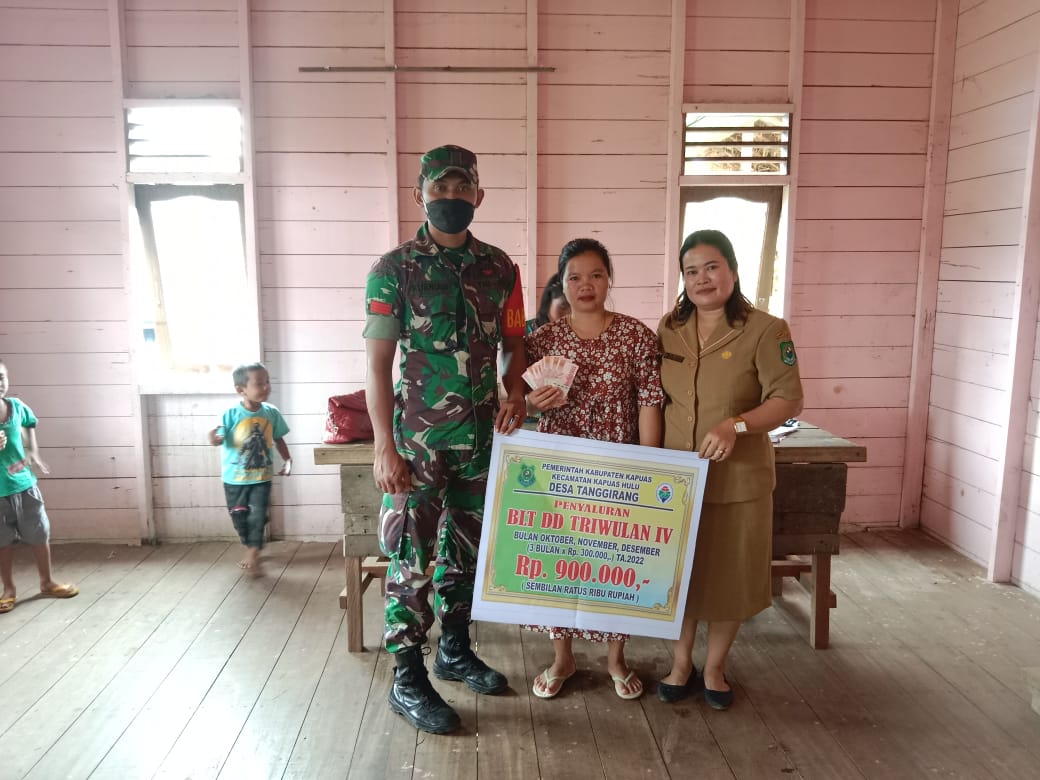 KUALA KAPUAS, kaltengtimes.co.id-Dengan mengambil tempat di aula kantornya, serta didampingi oleh satuan Babinsa dari Koramil Sei Hanyo, Sumanti Kepala Desa Tangirang Kecamatan Kapuas Hulu Kamis (24/11/22), salurkan secara langsung Bantuan Langsung Tunai (BLT) Dana Desa (DD) pada delapan tiga orang Keluarga Penerima Manfaat (KPM).