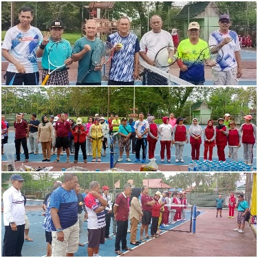 Selanjutnya digelar Pertandingan Tenis persahabatan di lapangan Tenis Beringin kategori ganda Putra dan Putri.