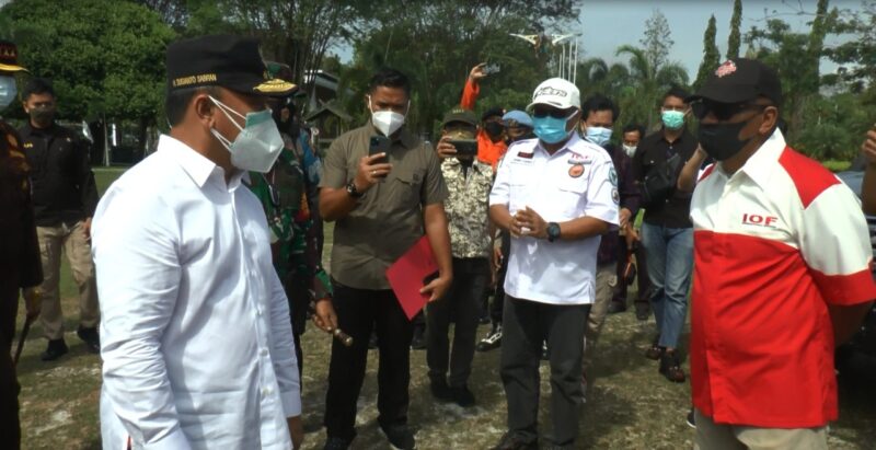 PALANGKA RAYA. Kaltengtimes.co.id — Indonesia Off Road Federation (IOF) Pengurus Daerah Kalimantan Tengah siap membantu Pemerintah Provinsi Kalimantan Tengah dalam penanganan bencana darurat banjir, terutama untuk mendistribusikan paket bantuan ke wilayah-wilayah pedalaman Kalimantan Tengah yang medan nya berat. Hal tersebut diungkapkan Ketua IOF Kalimantan Tengah, Harry Toeweh, di sela Apel Siaga Personil dan Sarana Prasarana (Sarpras) Penanganan Darurat Bencana Banjir yang digelar di Halaman Kantor Gubernur Kalimantan Tengah, Kamis (8/9) pagi. Gubernur Kalimantan Tengah H.Sugianto Sabran yang memimpin apel siaga tersebut saat melakukan sidak personil dan sarpras tersebut sempat mampir di barisan IOF Kalteng yang turut serta dalam apel siaga dimaksud. Gubernur H.Sugianto Sabran sempat meminta kepada Ketua IOF Pengda Kalimantan Tengah, HarryToeweh agar turut serta dalam percepatan penanganan bencana banjir di wilayah Kalimantan Tengah. Menaggapi harapan Gubernur tersebut, Harry Toeweh penghobby mobil off road di Palangka Raya sekaligus seorang kontraktor sukses ini menyatakan kesiapan nya menurunkan armada IOF untuk membantu percepatan pendistribusian bantuan bagi warga terdampak banjir di pedalaman Kalimantan Tengah. Apel siaga personil dan sarpras penanganan bencana banjir tersebut melibatkan unsur Forkopimda, Organisasi Kemasyarakatan, Organisasi Sosial, unsur TNI-Polri, Tagana, BPBD, IOF Kalteng dan semua isntan yang terlibat. (Ni)