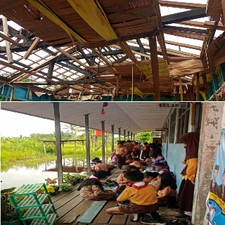 Berhubung hanya tiga ruangan yang masih bisa diefektifkan membuat sebahagian anak didik sekolah ini terpaksa melakoni kegiatan belajar mengajar di teras (Selasar) kelas.